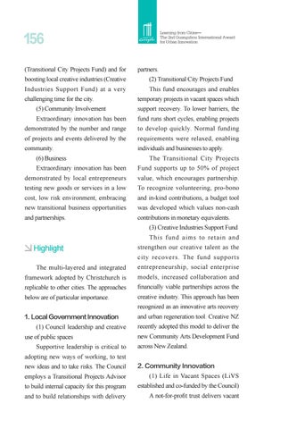 156 (Transitional City Projects Fund) and for