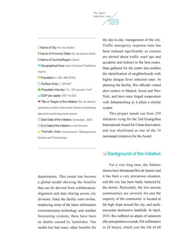 the day-to-day management of the city. Name of City: Rio de Janeiro Name of Province/ State: Rio de Janeiro State Name of Country/Region: Brazil Geographical Area: Latin America/ Caribbean region