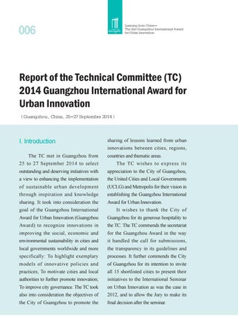 Report of the Technical Committee (TC) 2014 Guangzhou International Award for Urban Innovation (Guangzhou, China, 25-27 September 2014)
