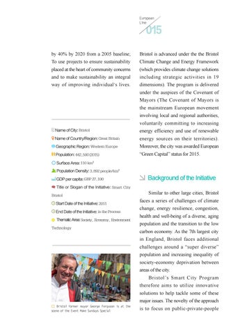 Title or Slogan of the Initiative: Smart City Bristol Start Date of the Initiative: 2011 End Date of the Initiative: in the Process Thematic Area: Society, Economy, Environment Technology