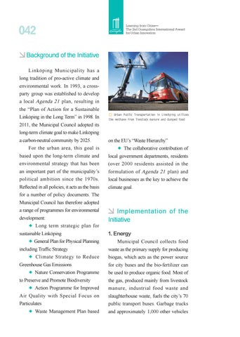 042 Background of the Initiative Linköping Municipality has a long tradition of pro-active climate and environmental work. In 1993, a crossparty group was established to develop a local Agenda 21 plan, resulting in the “Plan of Action for a Sustainable Linköping in the Long Term” in 1998. In