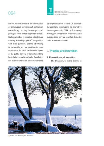 with multi-purpose”, and the advertising is put on the service pavilion to raise more funds. In 2011, the financial report of the public bicycle system showed the basic balance and thus laid a foundation for sound operation and sustainable