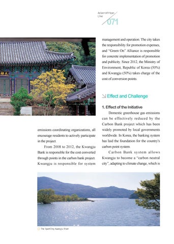 management and operation. The city takes the responsibility for promotion expenses, and “Green On” Alliance is responsible for concrete implementation of promotion and publicity. Since 2012, the Ministry of Environment, Republic of Korea (50%) and Kwangju (50%) takes charge of the cost of conversion points.