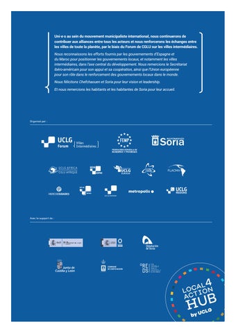 Uni·e·s au sein du mouvement municipaliste international, nous continuerons de contribuer aux alliances entre tous les acteurs et nous renforcerons les échanges entre les villes de toute la planète, par le biais du Forum de CGLU sur les villes intermédiaires. Nous reconnaissons les efforts fournis par les gouvernements d’Espagne et du Maroc pour positionner les gouvernements locaux, et notamment les villes intermédiaires, dans l’axe central du développement. Nous remercions le Secrétariat ibéro-américain pour son appui et sa coopération, ainsi que l’Union européenne pour son rôle dans le renforcement des gouvernements locaux dans le monde. Nous félicitons Chefchaouen et Soria pour leur vision et leadership. Et nous remercions les habitants et les habitantes de Soria pour leur accueil.