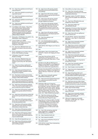 137. OCDE (2018), OECD Regions and Cities at a Glance. 138. Ibid. 139. ONU-Habitat, State of the World’s Cities 2010-2011, Cities for All: Bridging the Urban Divide. 140. Josep Maria Pascual Esteve (2019), Gentrification and Impoverishment in the Metropolis, Metropolis Observatory, n° Issue Paper 7. 141. Données sur les villes du WCCD pour le Rapport sur les Objectifs de développement durable de l’ONU 2017, portail du WCCD : https://www.dataforcities.org/publications.