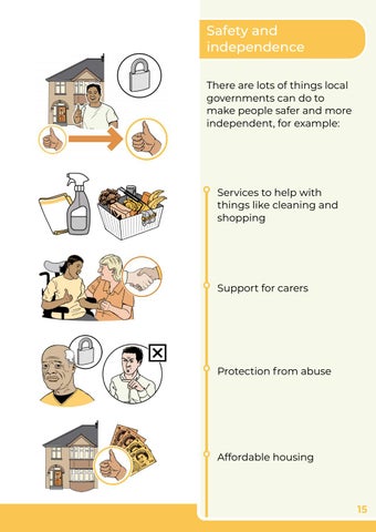 Safety and independence There are lots of things local governments can do to make people safer and more independent, for example: