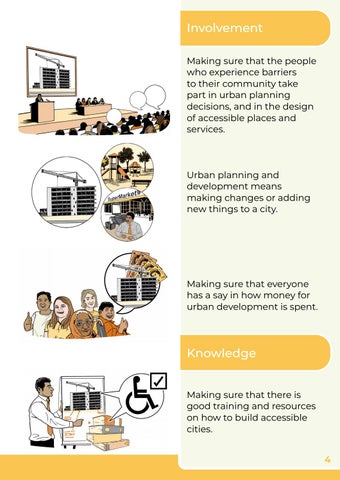 Involvement Making sure that the people who experience barriers to their community take part in urban planning decisions, and in the design of accessible places and services.