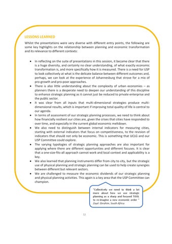 LESSONS LEARNED Whilst the presentations were very diverse with different entry points, the following are some key highlights on the relationship between planning and economic transformation and its relevance to different contexts: ·