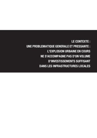 LE CONTEXTE : UNE PROBLEMATIQUE GENERALE ET PRESSANTE : L’EXPLOSION URBAINE EN COURS NE S’ACCOMPAGNE PAS D’UN VOLUME D’INVESTISSEMENTS SUFFISANT DANS LES INFRASTRUCTURES LOCALES