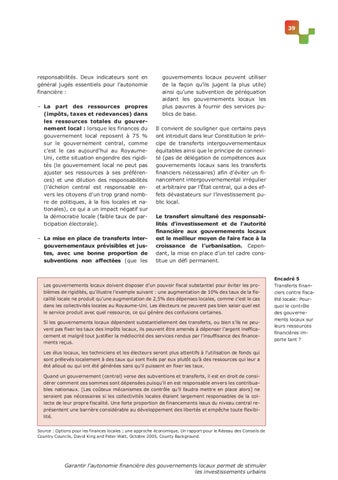 Encadré 5 Transferts financiers contre fiscalité locale: Pourquoi le contrôle des gouvernements locaux sur leurs ressources financières importe tant ?