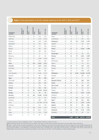 Table 1. Local governments in the 65 countries reporting to the HLPF in 2016 and 2017*.