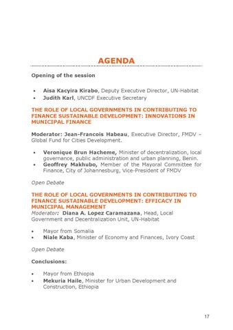 THE ROLE OF LOCAL GOVERNMENTS IN CONTRIBUTING TO FINANCE SUSTAINABLE DEVELOPMENT: INNOVATIONS IN MUNICIPAL FINANCE Moderator: Jean-Francois Habeau, Executive Director, FMDV – Global Fund for Cities Development.