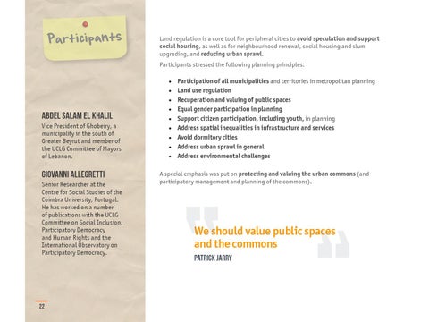 Giovanni Allegretti Senior Researcher at the Centre for Social Studies of the Coimbra University, Portugal. He has worked on a number of publications with the UCLG Committee on Social Inclusion, Participatory Democracy and Human Rights and the International Observatory on Participatory Democracy.