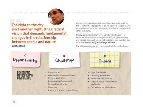 Finally, participants then broke up into mixed groups (of representatives of both metropolitan and peripheral cities) and worked on narratives for metropolitan areas based on the structure: Opportunity > Challenge > Choice