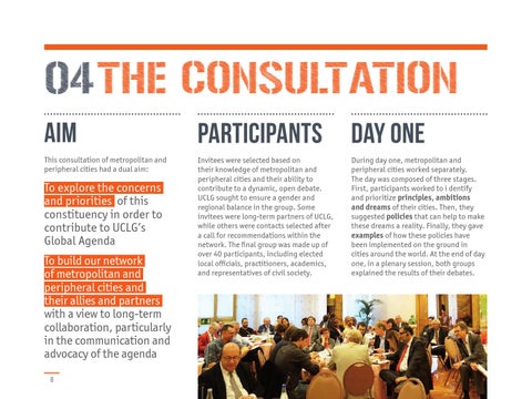 This consultation of metropolitan and peripheral cities had a dual aim: