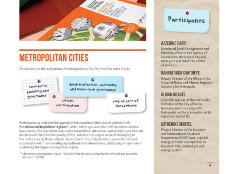 METROPOLITAN CITIES Discussions on the aspirations of metropolitan cities fell into four main blocks