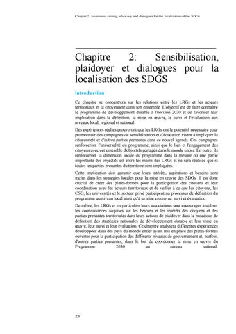 Chapter 2: Awareness raising, advocacy and dialogues for the localization of the SDGs
