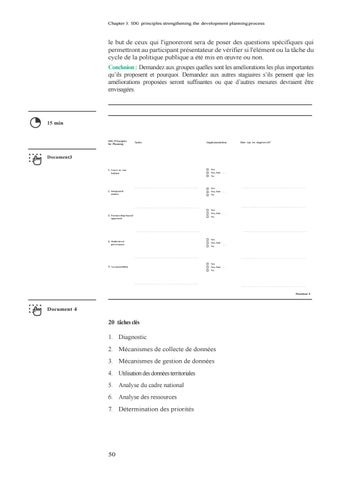 20 tâches clés 1. Diagnostic 2. Mécanismes de collecte de données 3. Mécanismes de gestion de données 4. Utilisation des données territoriales 5. Analyse du cadre national 6. Analyse des ressources 7. Détermination des priorités