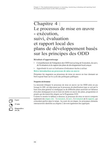 - exécution, suivi, évaluation et rapport local des plans de développement basés sur les principes des ODD Résultats d'apprentissage •