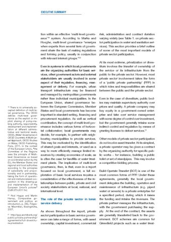 The role of the private sector in basic service delivery As shown throughout the report, private sector participation in basic service governance can take a range of forms, with asset ownership, capital investment, commercial