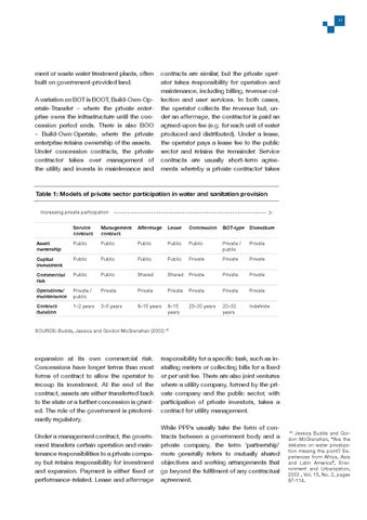 Table 1: Models of private sector participation in water and sanitation provision Increasing private participation