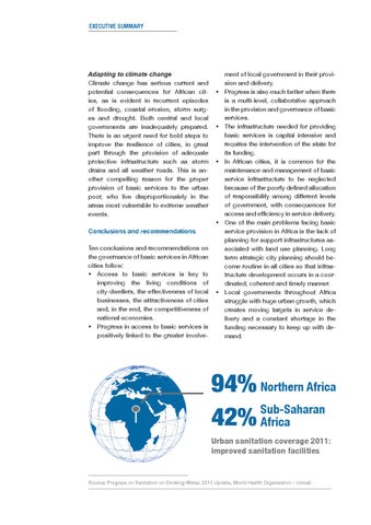 Conclusions and recommendations Ten conclusions and recommendations on the governance of basic services in African cities follow: Access to basic services is key to improving the living conditions of city-dwellers, the effectiveness of local businesses, the attractiveness of cities and, in the end, the competitiveness of national economies. Progress in access to basic services is positively linked to the greater involve-