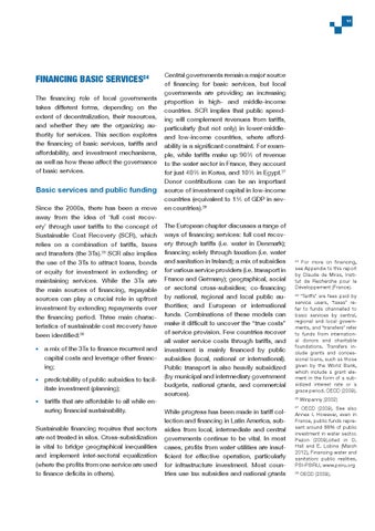 ‘Tariffs’ are fees paid by service users, ‘taxes’ refer to funds channelled to basic services by central, regional and local governments, and ‘transfers’ refer to funds from international donors and charitable foundations. Transfers include grants and concessional loans, such as those given by the World Bank, which include a grant element in the form of a subsidized interest rate or a grace period. OECD (2009). 25
