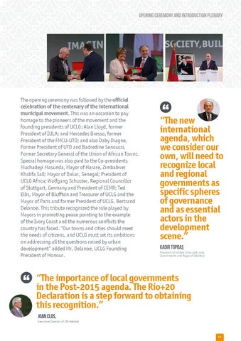 “The importance of local governments in the Post-2015 agenda. The Rio+20 Declaration is a step forward to obtaining this recognition.” Joan Clos, Executive Director of UN-Habitat