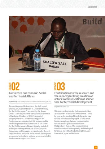 This side event concluded that communication, as instrument in territorial development, should be seen as the sharing of knowledge and a way to carry forward a social project. It is essential to move away from dialogue communication towards a more global communication that produces change. The communication conditions should be temporality and ideological for actors, but without substituting them, and transversal, equal and inclusive.