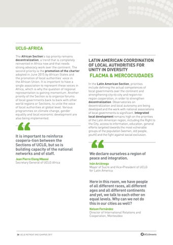 It is important to reinforce coopera-tion between the Sections of UCLG, but so is building capacity of the national networks and of staff. Jean Pierre Elong Mbassi Secretary General of UCLG Africa