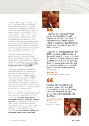 Social and territorial cohesion between large cities and their surrounding territories, including small and intermediary cities, is essential to the localization of the SDGs. Carlos Martínez Mínguez Mayor of Soria, Vice-President of UCLG for Europe