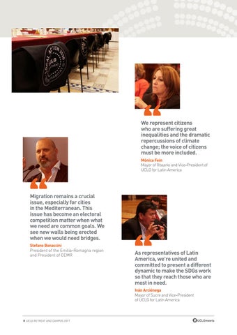 We represent citizens who are suffering great inequalities and the dramatic repercussions of climate change; the voice of citizens must be more included. Mónica Fein Mayor of Rosario and Vice-President of UCLG for Latin America