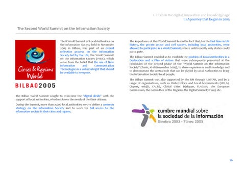 The Second World Summit on the Information Society The II World Summit of Local Authorities on the Information Society held in November 2005 in Bilbao, was part of an overall reflection process on the Information Society led by the UN, the World Summit on the Information Society (WSIS), which arose from the belief that the use of New Information and Communication Technologies is a universal right that should be available to everyone.