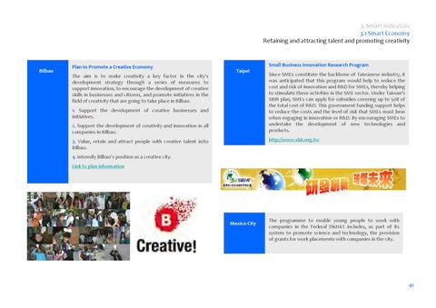 3. Smart Indicators 3.1 Smart Economy Retaining and attracting talent and promoting creativity