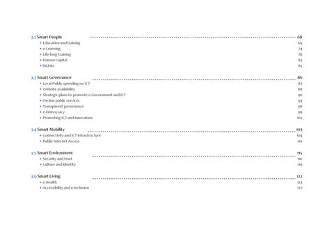 3.3 Smart Governance • Local Public spending on ICT • Website availability • Strategic plans to promote e‐Government and ICT • On‐line public services • Transparent governance • e‐Democracy • Promoting ICT and innovation