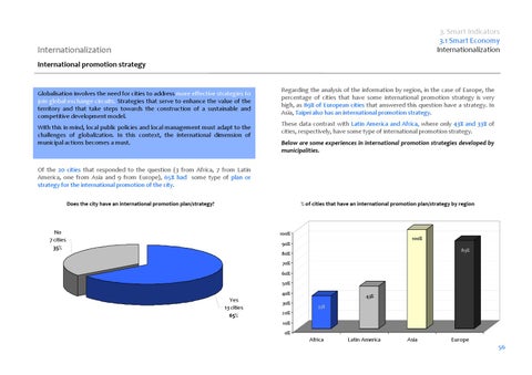 Regarding the analysis of the information by region, in the case of Europe, the percentage of cities that have some international promotion strategy is very high, as 89% of European cities that answered this question have a strategy. In Asia, Taipei also has an international promotion strategy. These data contrast with Latin America and Africa, where only 43% and 33% of cities, respectively, have some type of international promotion strategy. Below are some experiences in international promotion strategies developed by municipalities.