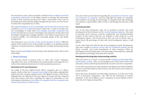 Over the past six years, cities around the world have been working to meet the commitment entered into at the Bilbao Summit to develop the Information Society in their territories and they have taken a step further with a view to promoting innovation and knowledge management processes, two key factors to achieve the competitiveness of cities.