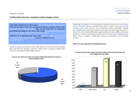 Below are some experiences developed by cities. Of the 19 cities (3 from Africa, 6 from Latin America, 1 from Asia and 9 in Europe) that answered the question, 68% have taken steps to support collaboration between companies and knowledge centres.