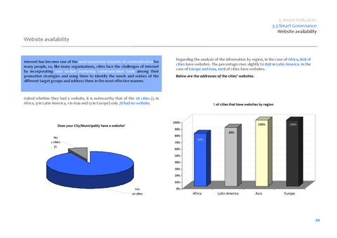 Regarding the analysis of the information by region, in the case of Africa, 80% of cities have websites. The percentage rises slightly to 89% in Latin America. In the case of Europe and Asia, 100% of cities have websites. Below are the addresses of the cities' websites.