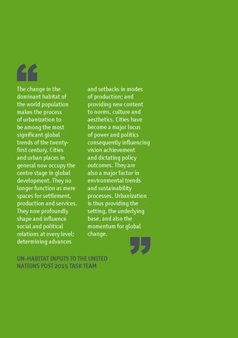 UN-HABITAT INPUTS TO THE UNITED NATIONS POST 2015 TASK TEAM