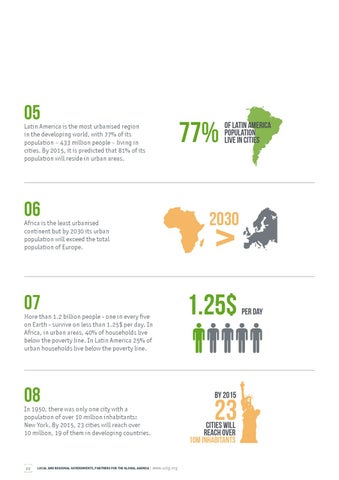 Latin America is the most urbanised region in the developing world, with 77% of its population – 433 million people – living in cities. By 2015, it is predicted that 81% of its population will reside in urban areas.