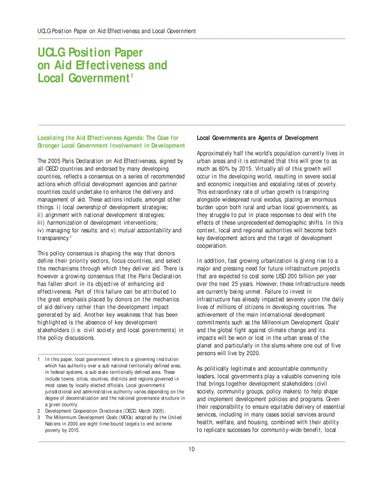 UCLG Position Paper on Aid Effectiveness and Local Government1
