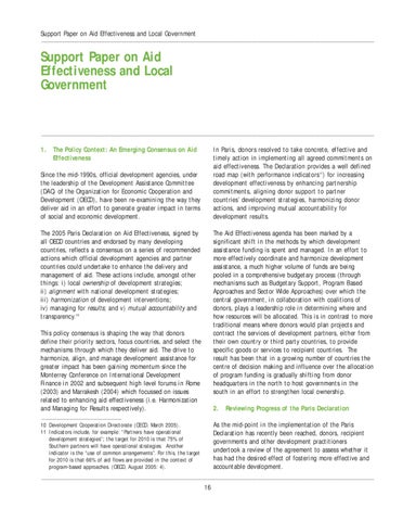 Support Paper on Aid Effectiveness and Local Government