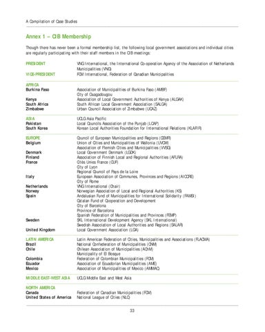 Annex 1 – CIB Membership Though there has never been a formal membership list, the following local government associations and individual cities are regularly participating with their staff members in the CIB meetings: PRESIDENT VICE-PRESIDENT AFRICA Burkina Faso