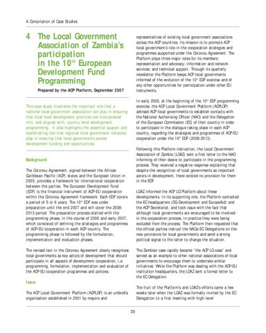 4 The Local Government Association of Zambia’s participation in the 10th European Development Fund Programming