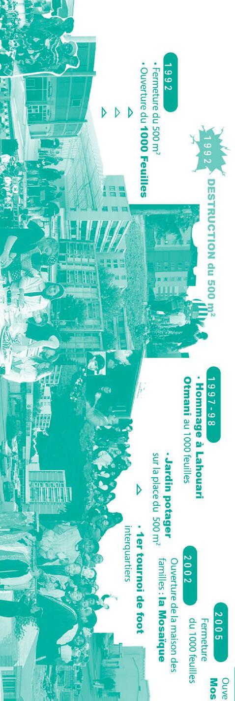 This action-research created a timeline that juxtaposes the social dynamics which transformed Valibout. It gives us a glimpse of the long history of interventions of institutional actors and it makes clear the many poorly coordinated and rarely evaluated demolitions of collective spaces that are a recurring, and often arbitrary, feature of the city. It also reveals the shortcomings of landlords and the municipality, and their responsibilities for the mismanagement of buildings and public spaces. For mobilised residents and activists, the timeline is a tool for mobilisation and a call to action that reveals the stakes of this kind of large scale urban intervention. Alongside these spatial transformations, the timeline offers insight into the rich social and political history of Valibout. Although certain forms of obstruction and repression are now aimed at organisations opposing municipal projects, our research underlines the importance of the collective efforts that have long been integral to the neighbourhood. This history reminds us that Valibout was an important place for the emergence of citizen, immigrant and anti-racist struggles as well as a local cultural scene. These dynamics have left their mark in the political and social fabric that, despite its material difficulties, manages to maintain its activities with or without government support. The work of collecting and circulating archives contributes to the emergence of a debate around a common heritage to be defended, a local history to be passed on, in contrast