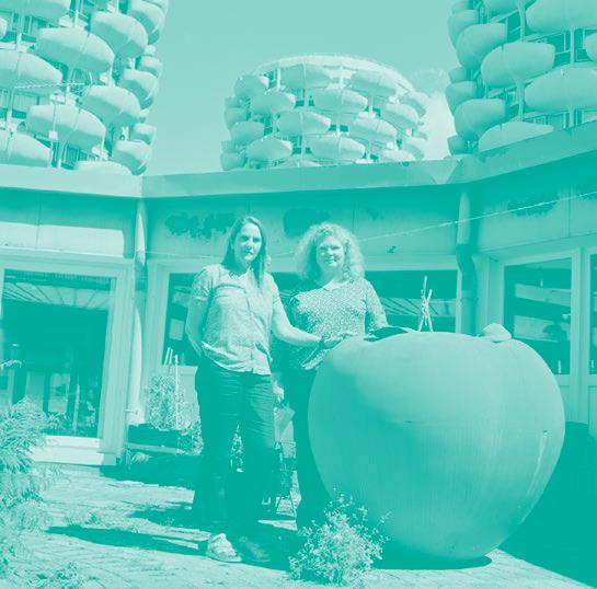 Prize ceremony for the drawing and writing competition organised with the local primary schools in Créteil; Artwork by Léa Xia from the CP class, Blaise Pascal school; Valérie Pottier and Martine Bacrot photographed in the courtyard of the local primary school Charles Peguy, summer Balconies of les Choux, Image by Wendy Huynh, July 2021.