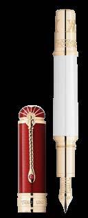 Es gibt wohl keine kostbareren Zeilen als jene geschrieben mit einem exklusiven Füllfederhalter. Diese Limited Edition von Montblanc ist eine Hommage an Prinz Albert. Die Patron of Art Edition 2022 enthält auch ein Pendant als Hommage an Queen Victoria. Der Füllfederhalter besteht aus einem perlweiß lackierten Korpus und einer Kappe mit bordeauxrotem Lack. Die Beschläge sind signaturvergoldet. Beim roten Kappenkopf ließen sich die Designer von Montblanc von der Kuppel des Crystal Palace inspirieren. Ein Emblem von Montblanc aus weißem Edelharz vervollständigt das unvergleichlich edle Erscheinungsbild. Jeder Federstrich hinterlässt einen bleibenden Abdruck, besteht doch die Feder aus 750er Massivgold, geprägt mit dem Wappen von Sachsen. Die Feder ist in zwei Stärken wählbar. Von Hand schreiben war noch nie so schön.