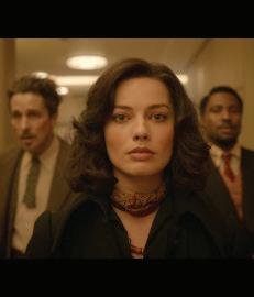 Amsterdam tries to juggle too many concepts at once. It attempts to genre blend as a drama, comedy and murder mystery with shots of romance and noir, but succeeds at almost nothing. Thematically, the fi lm starts as a mystery revolving around friendships and the strength of these bonds. During the fi nal minutes of the fi lm, it becomes a critique of corporate corruption and later about political conspiracy and fascism. When the audience is fi nally reminded of the themes of friendship at the very end, it is hastily presented as a lengthy, overt monologue.