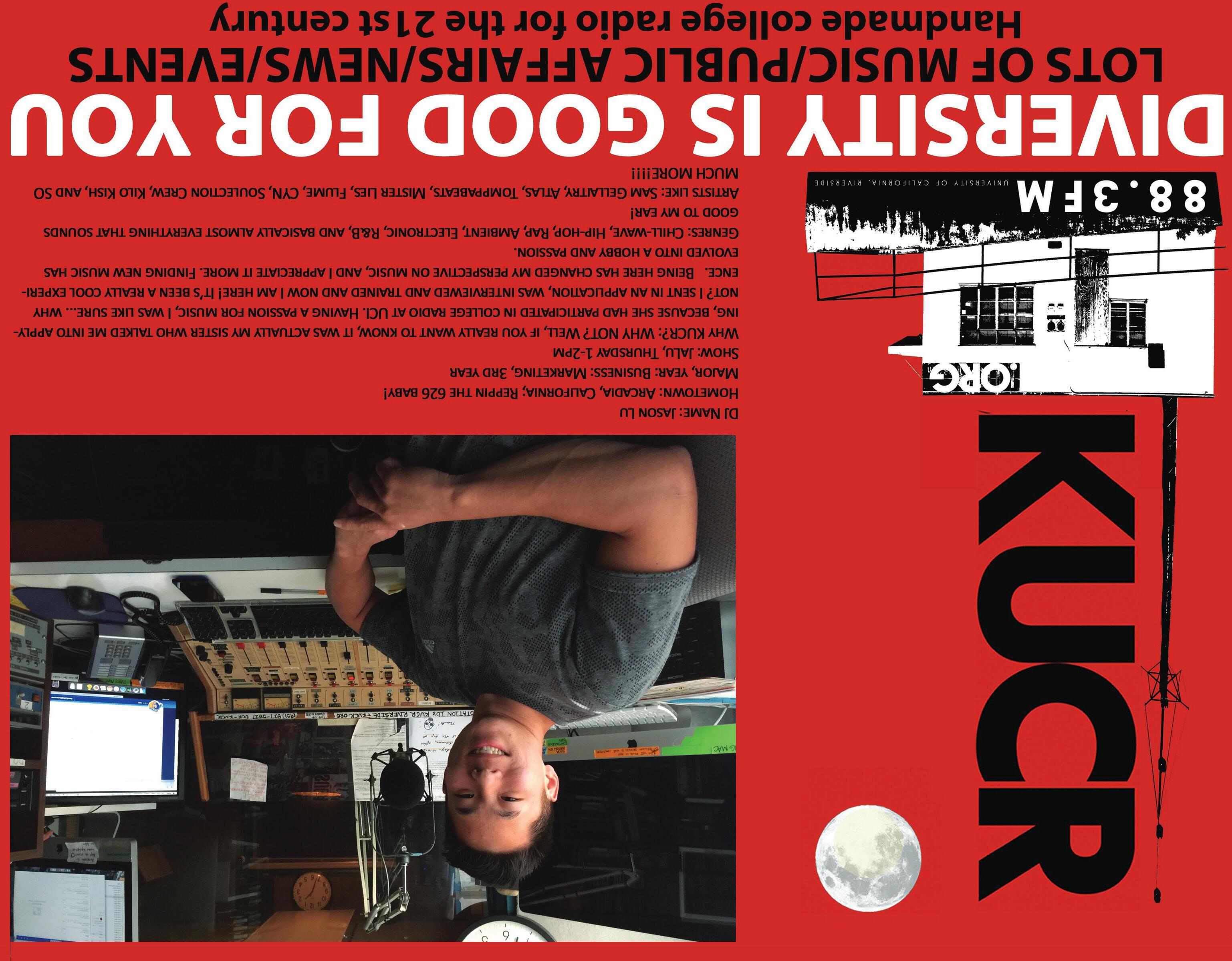 Why KUCR?: KUCR has been a great creative outlet for me to share my music with people and make great friends along the way. It has been so much more than a radio station to me, it has become my community and brought people into my life I would consider my family.